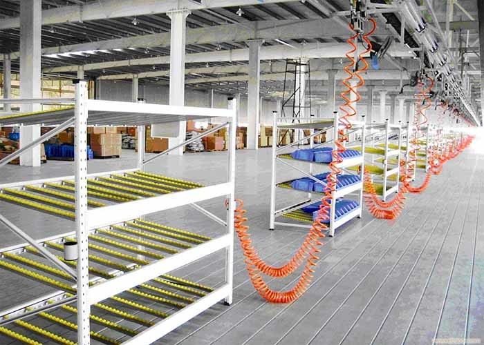 ในส่วนของราคการไหลของพาเล็ตโดยแรงโน้มถ่วง พาเล็ตถูกวางบนม้วนที่ชันไปยังหน้าพิกโดยแรงโน้มถ่วงและได้รับจากด้านตรงข้ามการกําจัดการจัดการคู่จากพื้นที่รับความเร็วในการผลิตรวมกับการหมุนสต๊อกอัตโนมัติ เป็นข้อดีหลักของระบบนี้